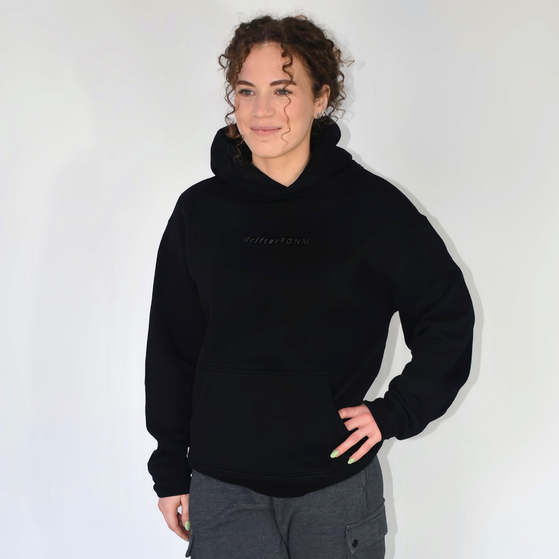 • Dropped shoulder, kangaroo pocket in front